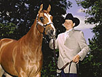 Daren Showalter, trainer, riding Shining Slidewinder, owned